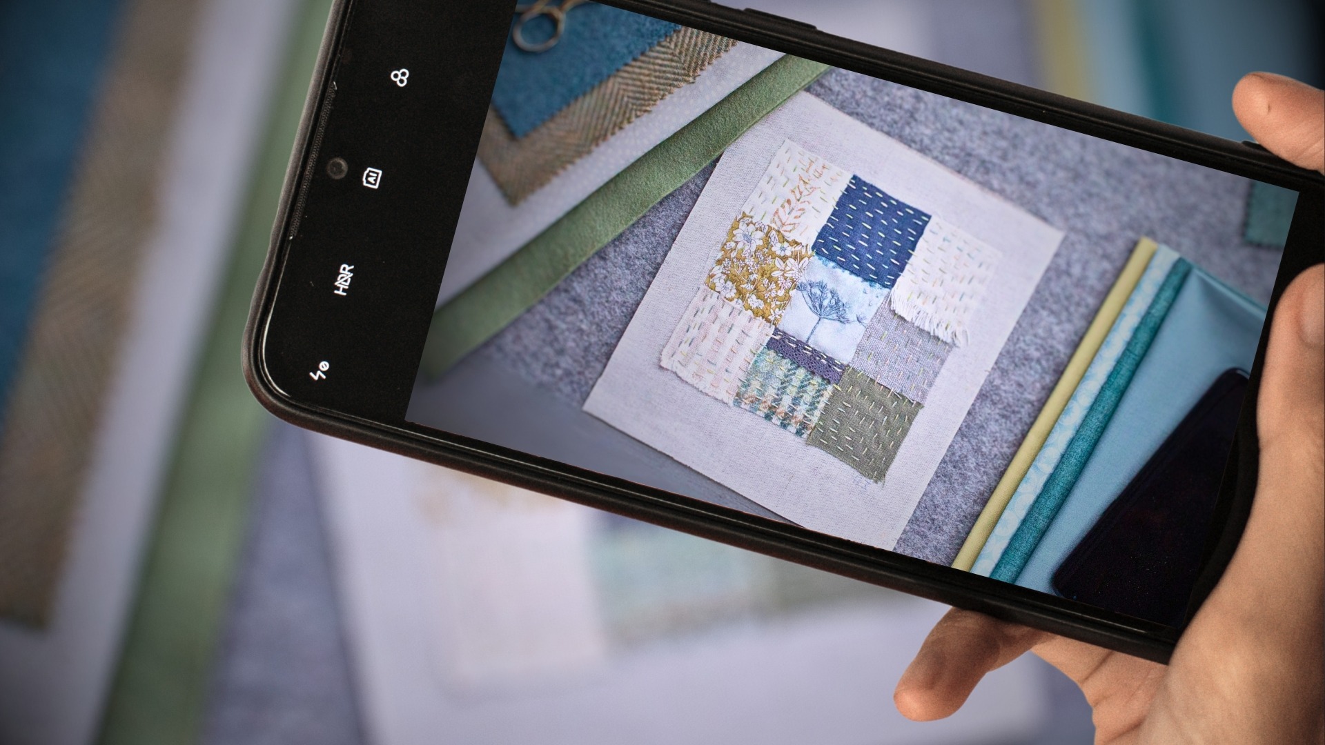 Check that the whole artwork is in focus, not just the central area. If the centre of the image is the only part that’s in focus, try moving further away and zooming in a little using your camera zoom. A sharp focus is important for giving you the best quality image of the stitches and textures.
